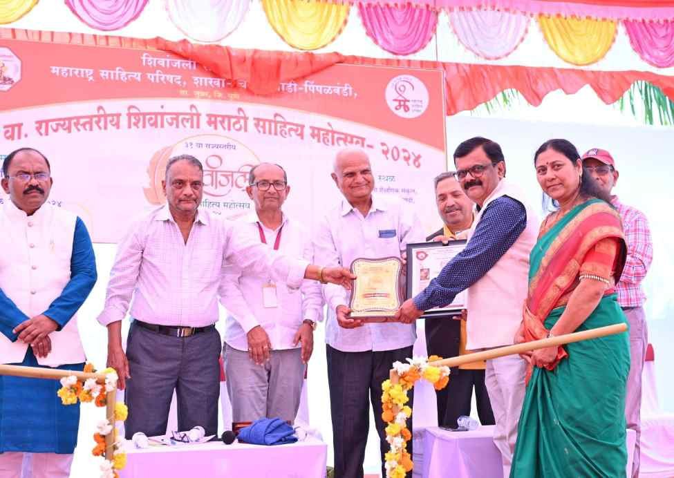 चिंचवड : पिंपरी चिंचवड शहरातील साहित्यिक राजेंद्र घावटे यांच्या “चैतन्याचा जागर” या विचारसंग्रहरुपी ग्रंथाला शिवांजली साहित्य सन्मान पुरस्काराने सन्मानित करण्यात आले. चाळकवाडी (पिंपळवंडी) ता. जुन्नर येथे नुकताच “एकतीसावा राज्यस्तरीय शिवांजली मराठी साहित्य महोत्सव” संपन्न झाला. अखिल भारतीय मराठी साहित्य संमेलनाचे माजी अध्यक्ष डॉ. श्रीपाल सबनीस यांच्या हस्ते राज्यभरातील उल्लेखनीय साहित्य कृतींचा सन्मान करण्यात आला. राजेंद्र घावटे लिखित “चैतन्याचा जागर” या साहित्य कृतीचा दिवंगत साहित्यिक पारू कडाळे स्मृती पुरस्कार देऊन विशेष गौरव करण्यात आला. या प्रसंगी शिवांजली चे अध्यक्ष इंजि. शिवाजी चाळक , छत्रपती संभाजीनगर येथील प्रा. डॉ. महेश खरात, अकोला येथील कृषिभूषण अनंत भोयर, प्राचार्या डॉ. गुंफा कोकाटे, माजी शिक्षण सचिव अनिल गुंजाळ व राज्यभरातील साहित्यिक उपस्थित होते. मराठी भाषा गौरव दिनाच्या पार्श्वभूमीवर प्रतिवर्षी प्रमाणे शिवांजली साहित्य महोत्सवाचे आयोजन शिवांजली साहित्यपीठ व महाराष्ट्र साहित्य परिषद यांच्या वतीने करण्यात आले होते.