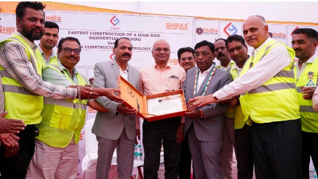 पिंपरी-चिंचवड : दि. १८ मार्च २०२६ :- पुणे महानगर परिसरात बांधकाम क्षेत्रात एक अभूतपूर्व कामगिरी समोर आली असून, केवळ १०० दिवसांत १४ मजली उंच निवासी इमारत उभी करत बी. जी. शिर्के कन्स्ट्रक्शन टेक्नोलॉजी प्रा. लि. यांनी इतिहास घडवला आहे. या विक्रमी कामगिरीची दखल घेत इंडिया बुक ऑफ रेकॉर्ड्स कडून त्यांना सन्मानित करण्यात आले आहे.