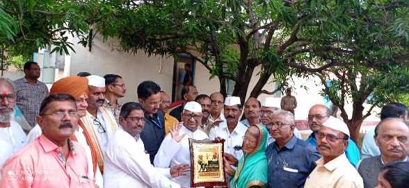 पिंपरी :- महाराष्ट्र कामगार साहित्य परिषद आणि पुणे जिल्हा गुणवंत कामगार विकास समितीच्या सदस्यांनी राळेगणसिद्धी येथे जाऊन पद्मभूषण समाजसेवक आण्णा हजारे यांना त्यांच्या जन्मदिनी (दि.१५ जून २०२२) पिंपरी चिंचवडच्या बहिणाई ज्येष्ठ कवयित्री राधाबाई वाघमारे यांच्या हस्ते “जय जवान जय किसान” पुरस्कार प्रदान करून सन्मानित करण्यात आले.