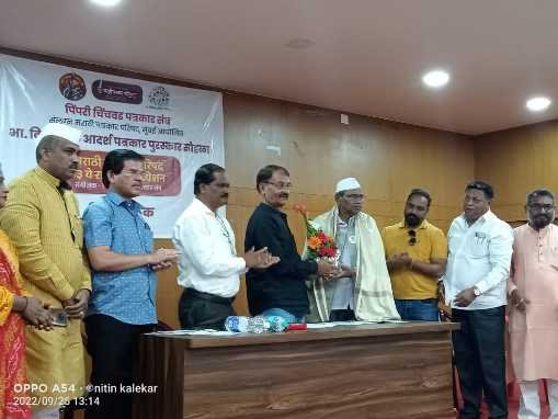 पिंपरी : पिंपरी चिंचवड पत्रकार संघाच्यावतीने दिला जाणारा भा.वी.कांबळे आदर्श पत्रकार पुरस्कार ज्येष्ठ संपादक शिवाजीराव शिर्के यांना प्रदान करण्यात आला आहे. आज रविवारी दि. २६ रोजी सावित्रीबाई फुले हॉल, पिंपरी येथे झालेल्या कार्यक्रमात मराठी पत्रकार परिषदेचे प्रमुख विश्वस्त एस. एम. देशमुख यांच्या हस्ते हा पुरस्कार प्रदान करण्यात आला.