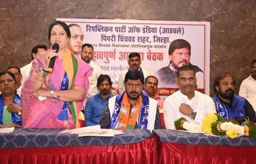 चिंचवड :- चिंचवड विधानसभा पोटनिवडणुक रिपब्लिकन पार्टी ऑफ इंडिया, भारतीय जनता पार्टीच्या व मित्र पक्षाच्या लोकप्रिय उमेदवार अश्विनीताई लक्ष्मण जगताप यांच्या प्रचारासाठी पिंपरी चिंचवड शहरातील पदाधिकाऱ्यांची केंद्रीय राज्यमंत्री रामदास आठवले साहेब यांनी महत्त्वपूर्ण मीटिंग घेतली. सदर मीटिंगमध्ये अश्विनीताई जगताप यांना निवडून आणण्यासाठी सर्वतोपरी प्रयत्न करण्याचे आवाहन आदेश रामदास आठवले यांनी दिले रिपब्लिकन पक्ष ज्यांच्या पाठीशी उभा राहतो तो उमेदवार शंभर टक्के विजयी होतो व रिपब्लिकन पक्षाची युती भाजप बरोबर असल्याकारणाने आरपीआयच्या सर्वच कार्यकर्त्यांनी मतदारांनी अश्विनीताईंना मतदान करावे अशी विनंती केली. लक्ष्मण भाऊ जगताप यांनी पिंपरी चिंचवड शहराचा अत्यंत महत्त्वाचा विकास केला आहे या शहराच्या विकासासाठी त्यांचे फार मोठे योगदान आहे असे पक्षनिष्ठ व प्रामाणिक नेत्यांना श्रद्धांजली व्हायचे असेल तर आपले बहुमोल असणारे मत अश्विनीताई जगताप यांना म्हणजेच कमळाला द्या.